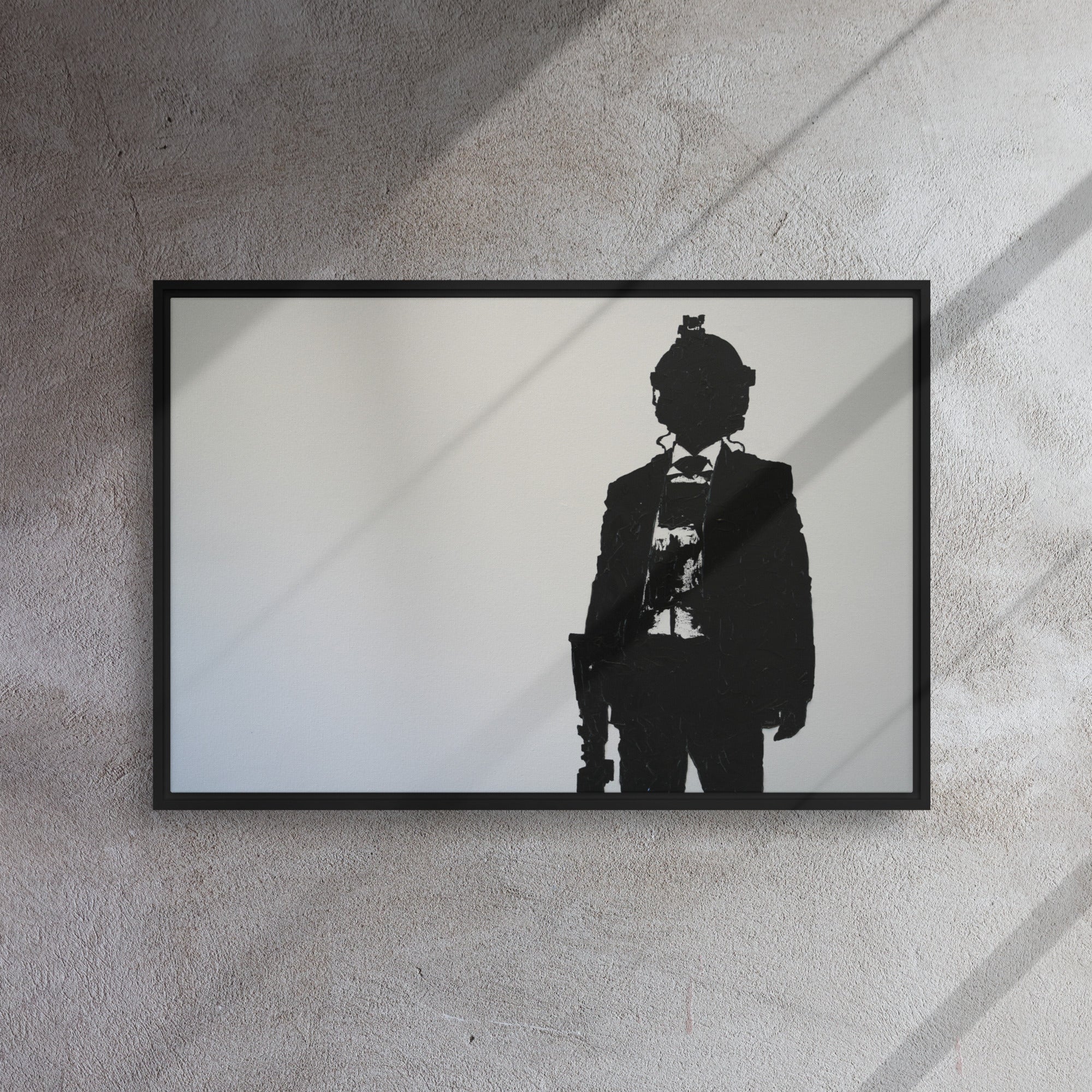 - The framed canvases with brown and black frames have a black inside around the canvas, and the canvases with white frames have a white inside around the canvas.