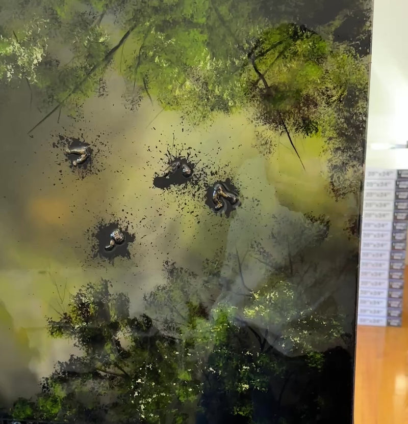 This is a 20x30 inch canvas done in heavy bossy acrylics. And encased in Art Resin. This is a 1 of 1 original painting by Invader Girl.