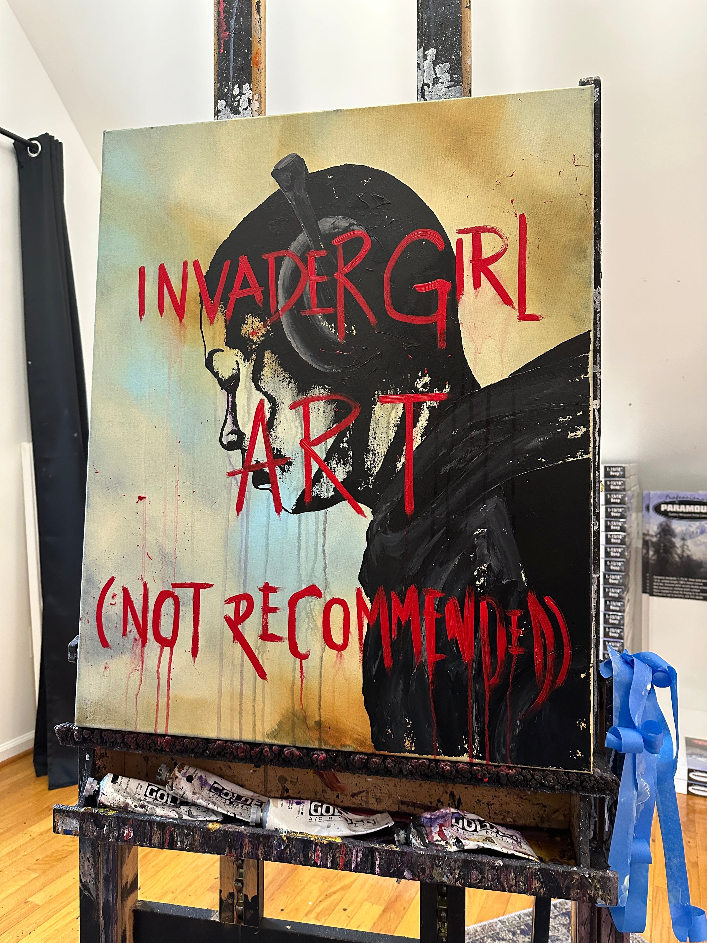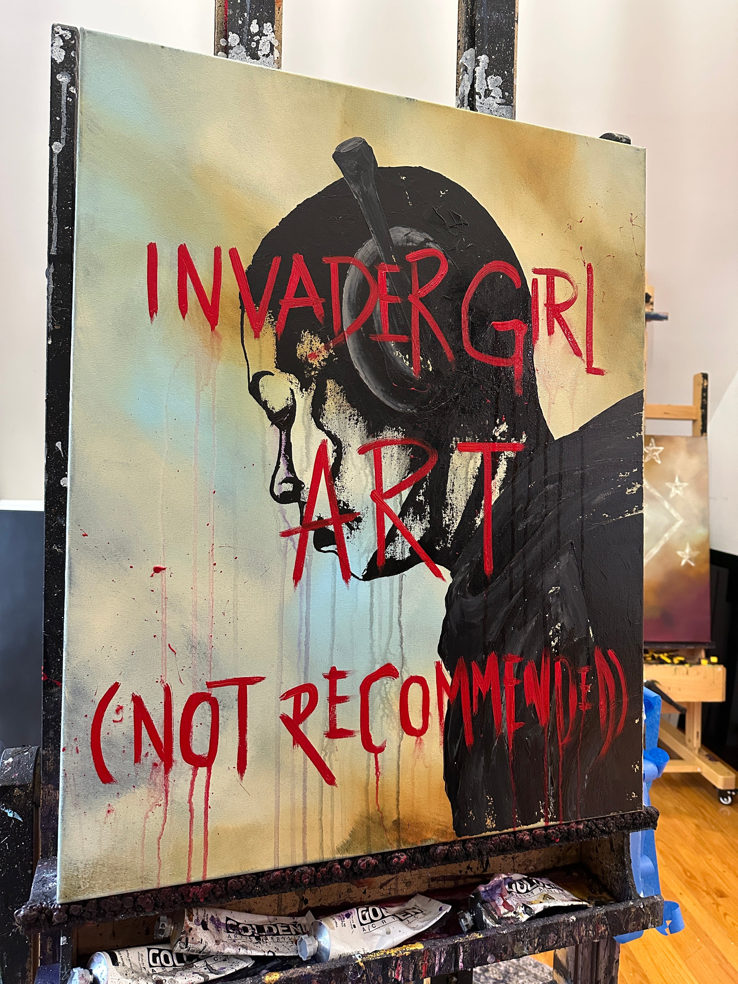 Invader Girl Art (not recommended) – a 24×30 inch original canvas.