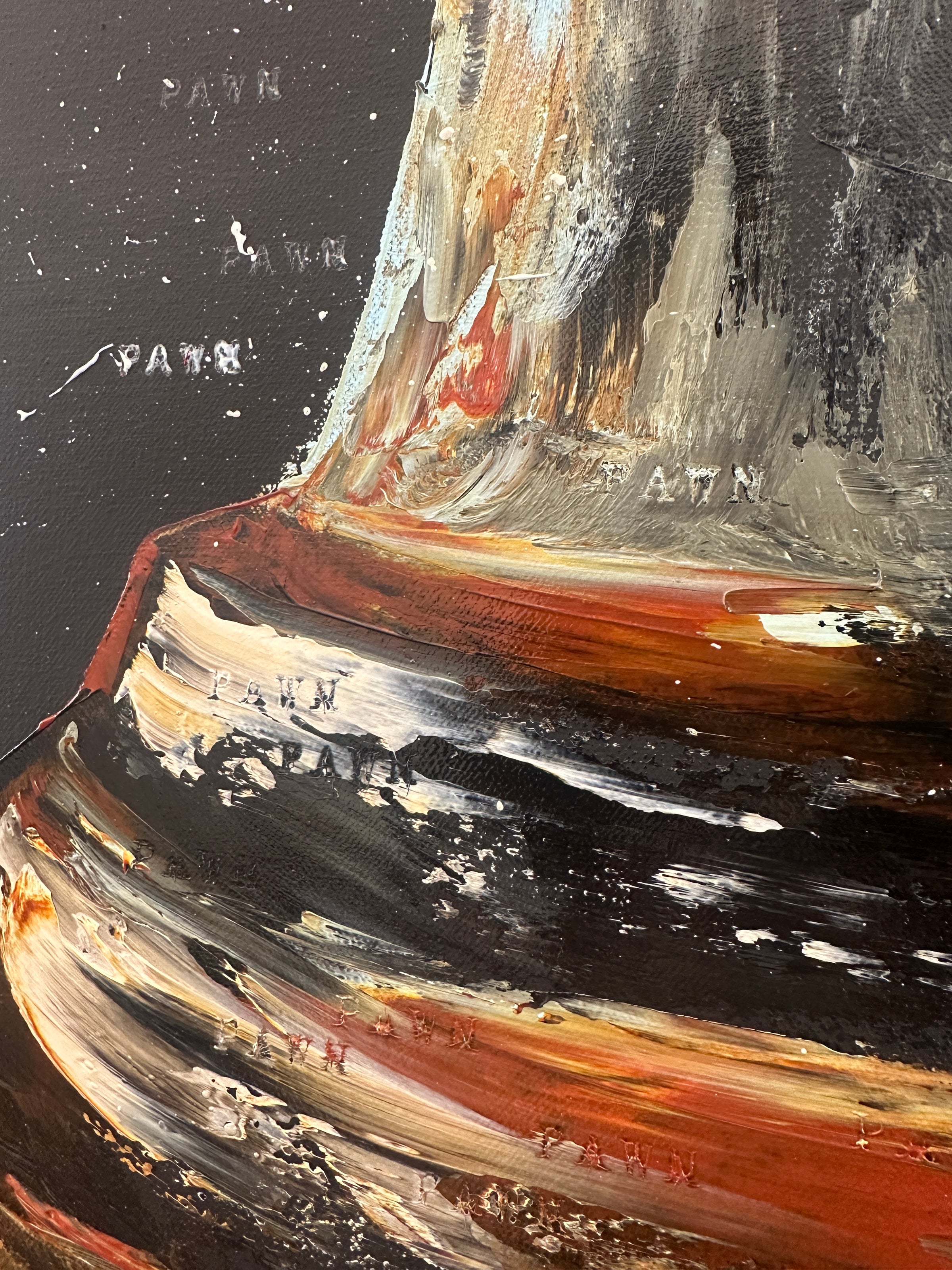 This is a 20x30 inch canvas done in heavy body acrylics. Please note some portions do glow in the dark.