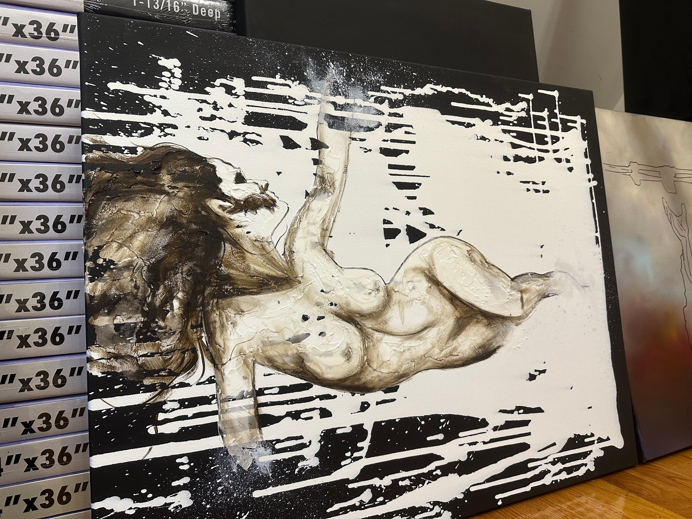 Part of Invader Girl's private collection, "War, she lured them" is being shared for the first time. This 2023 original painting done in heavy body acrylics on canvas is 30 inches tall and 24 inches wide. This is a 1 of 1 original from Invader Girl depicting the seductive nature of War.