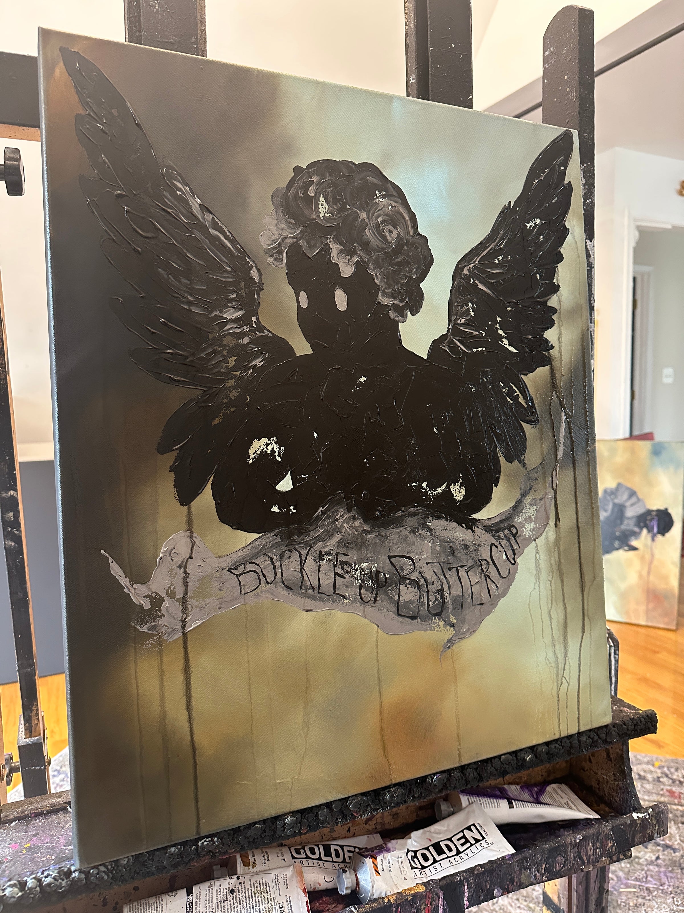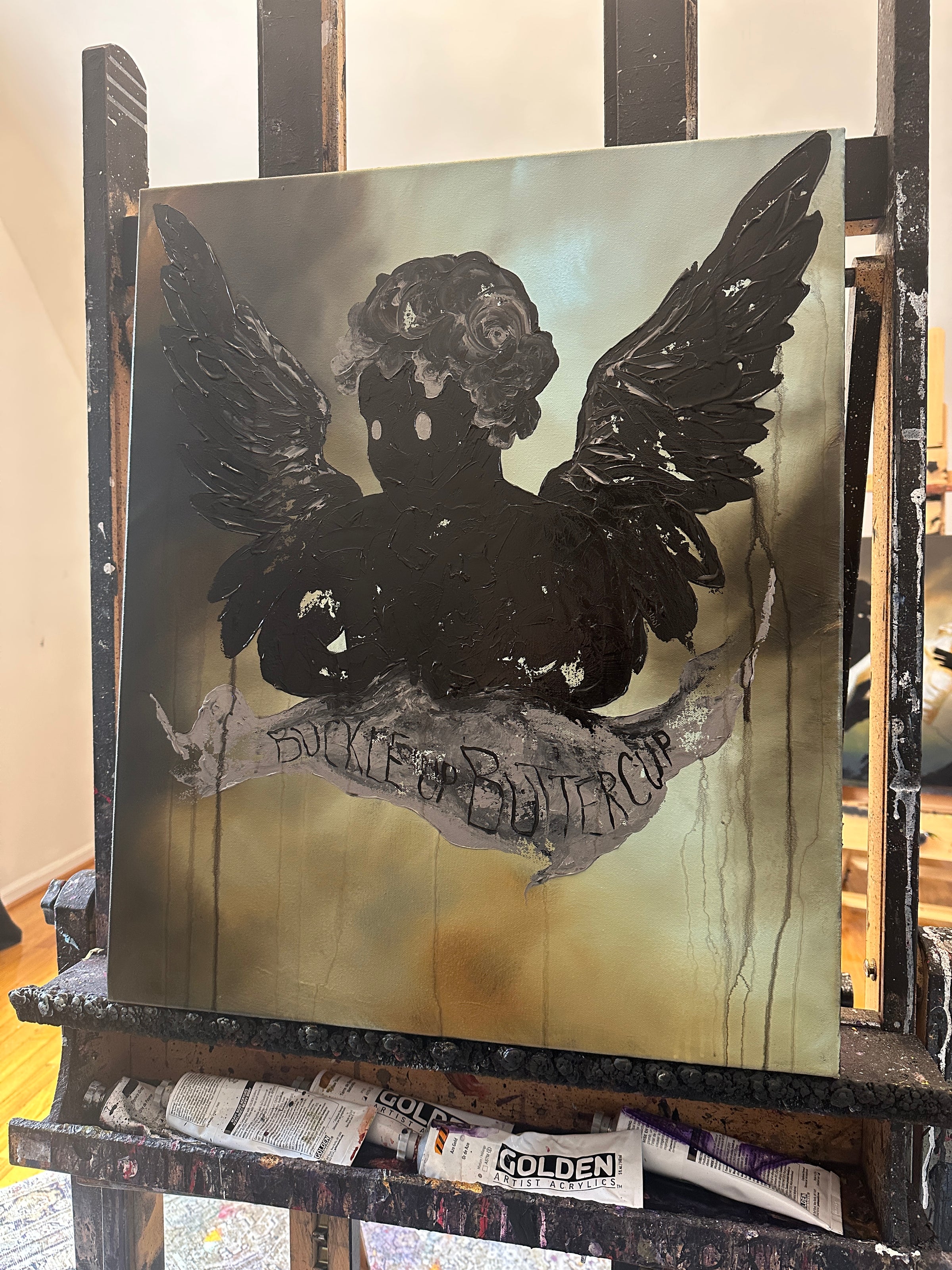 This is a 20x24 inch canvas. Painting is done in heavy body acrylics. This is a 1 of 1 original painting from Invader Girl.