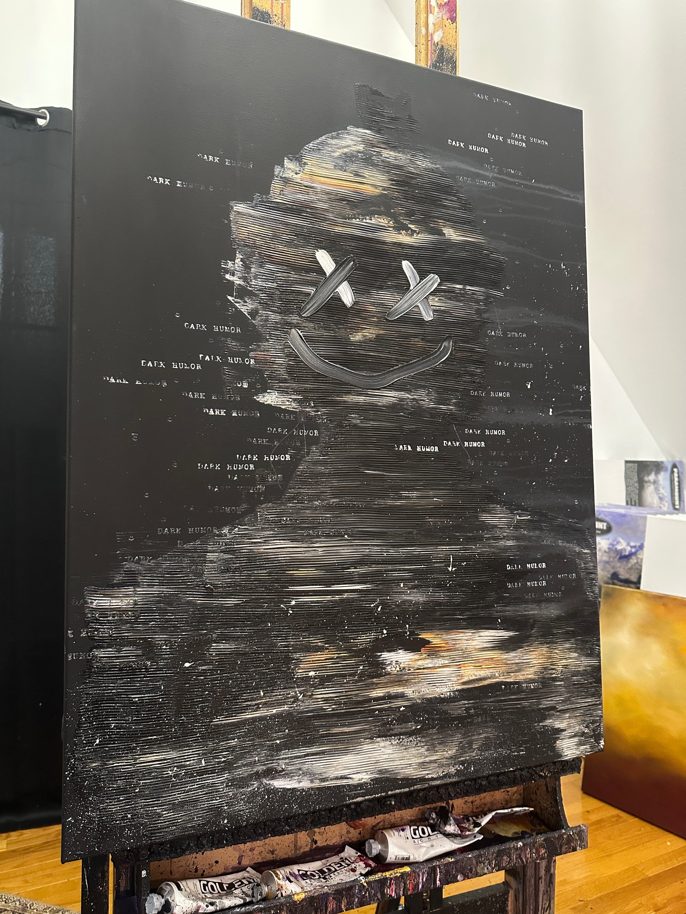 This is a 30x40 inch canvas painting. Parts of the painting do glow in the dark. This is a 1 of 1 original painting by Invader Girl.