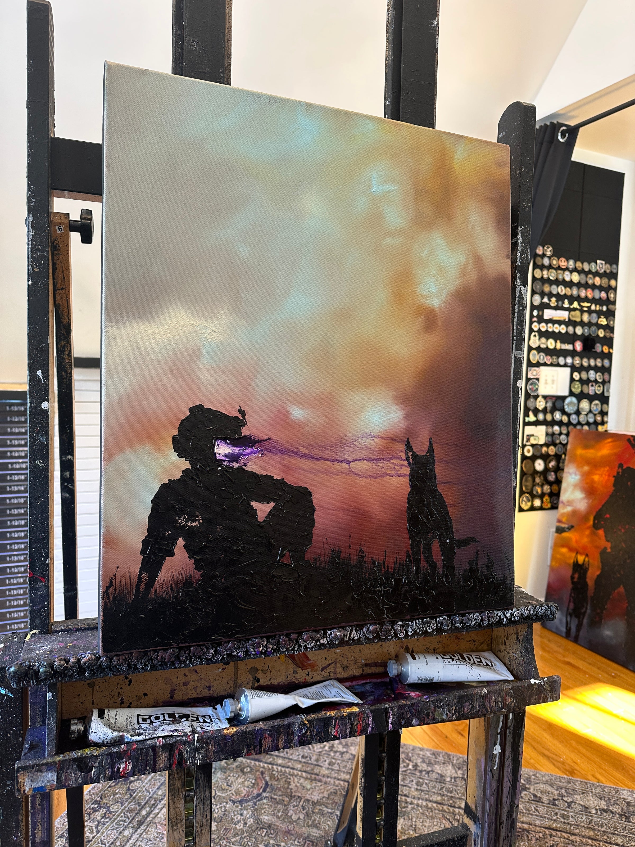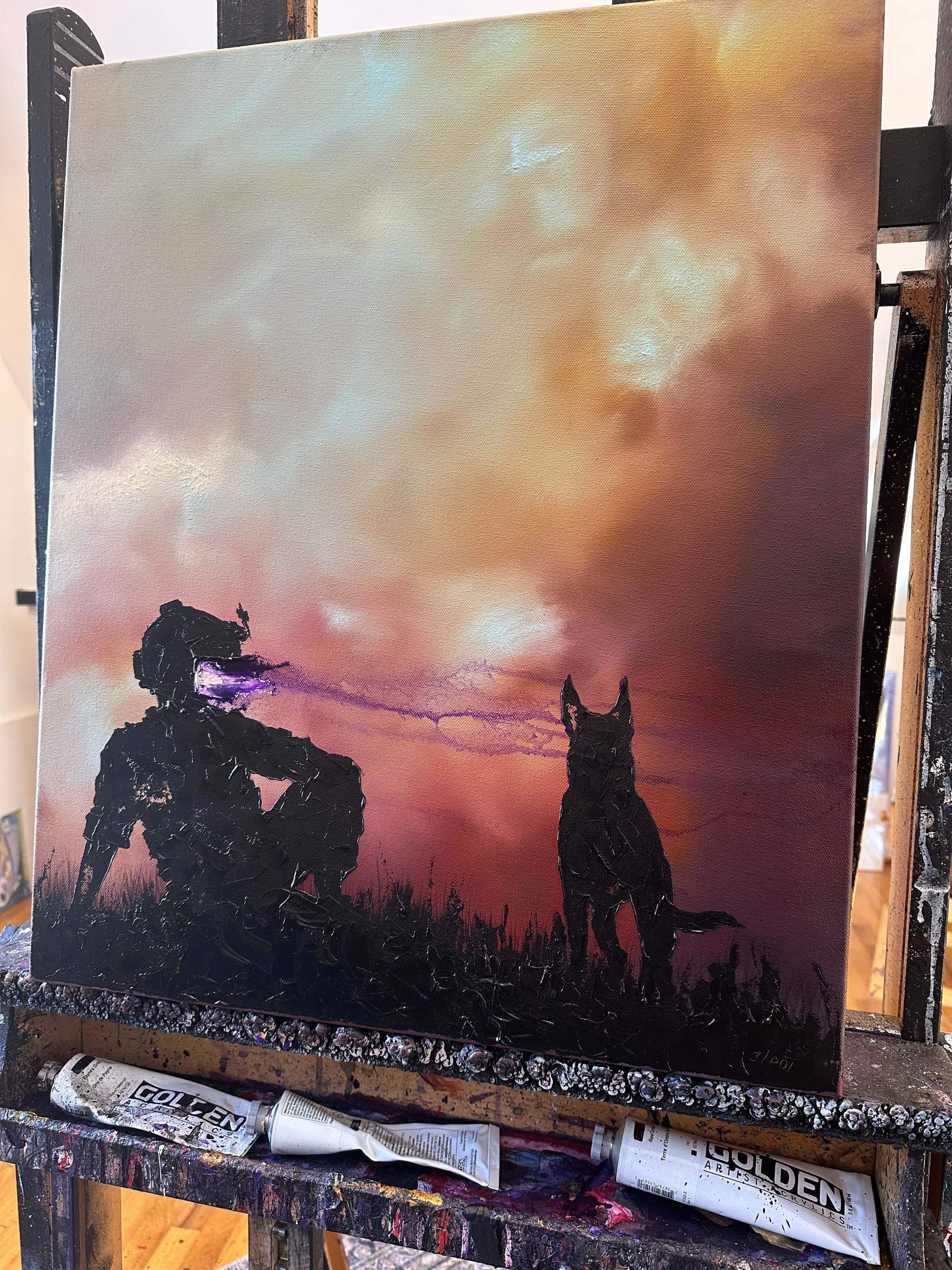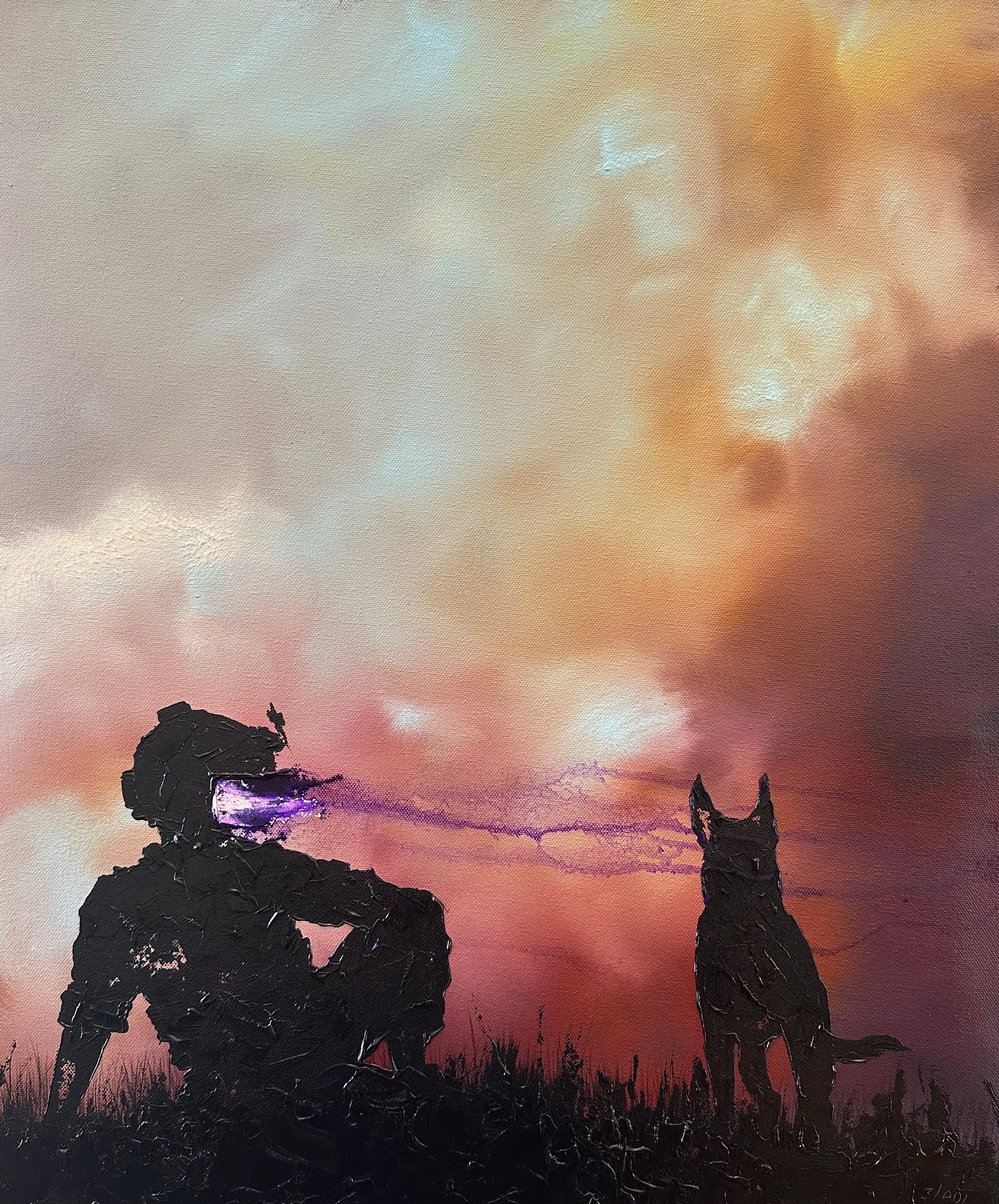 This is a 20x24 inch canvas done in heavy body acrylics and pallet knife. This is a 1 of 1 original painting from Invader Girl.