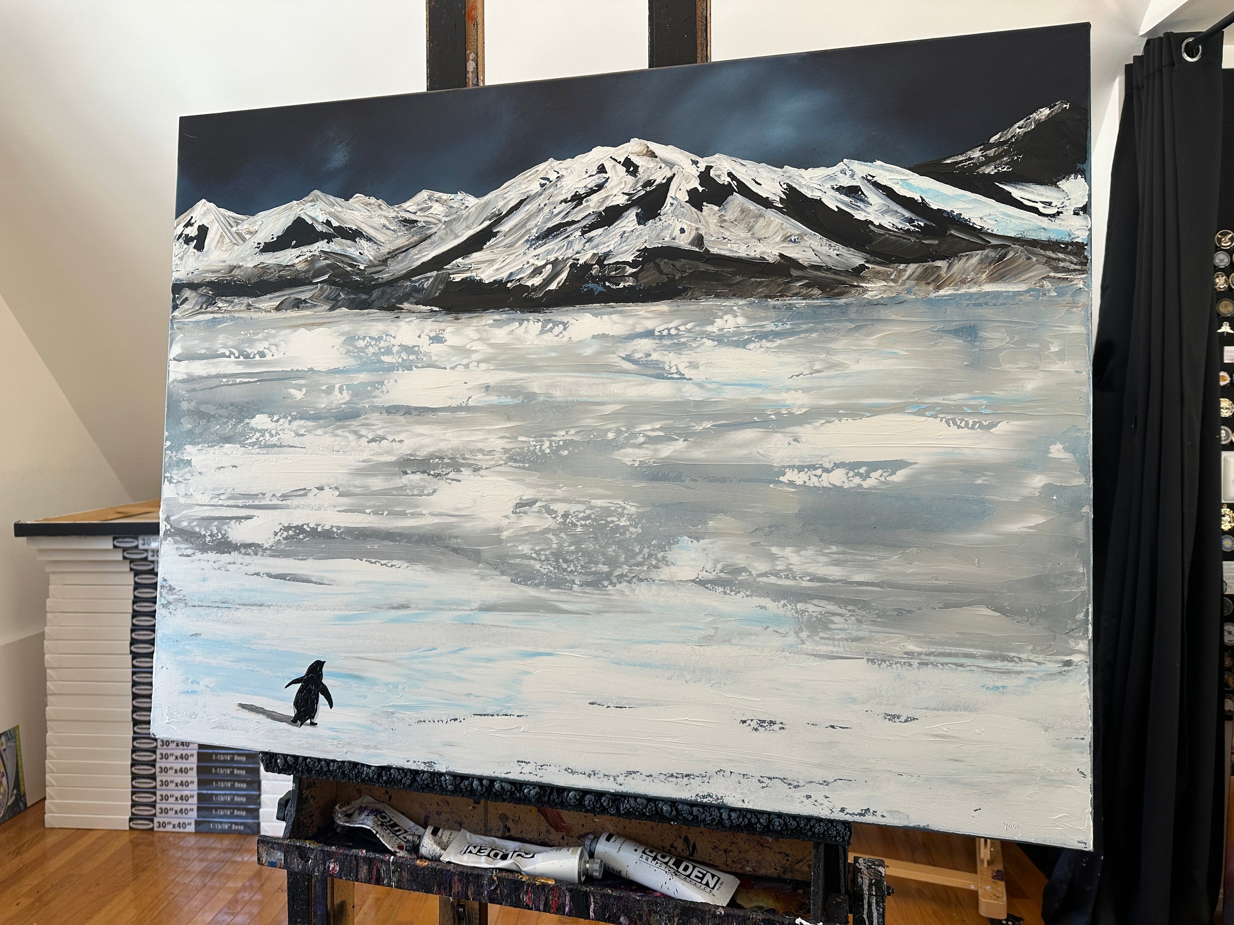 This is a 30x40 inch canvas done in heavy body acrylics and pallet Knife. This is a 1 of 1 original from Invader Girl.