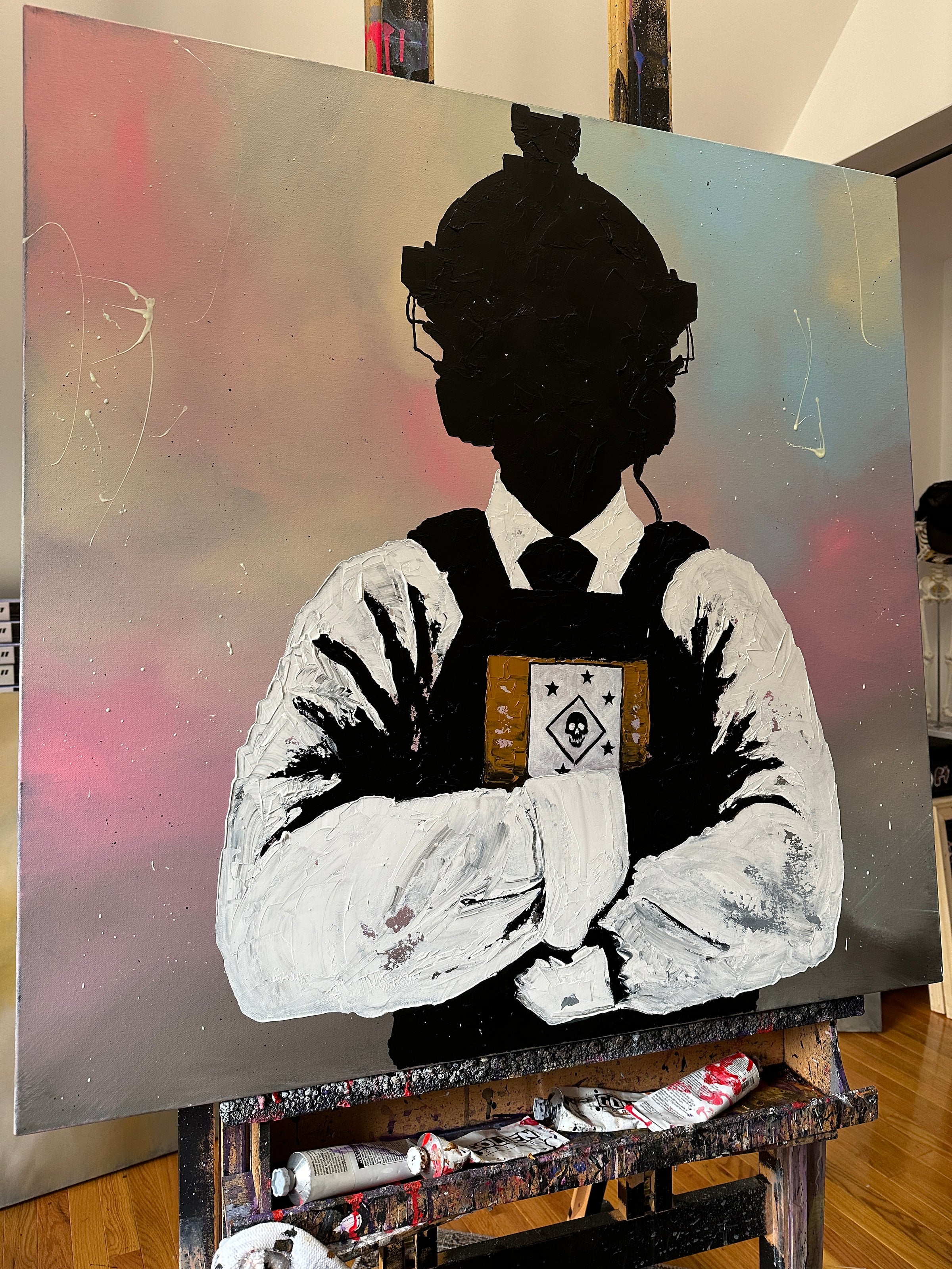 36x36 inch canvas, heavy body acrylic, raiders among us, please note some parts do glow in the dark
