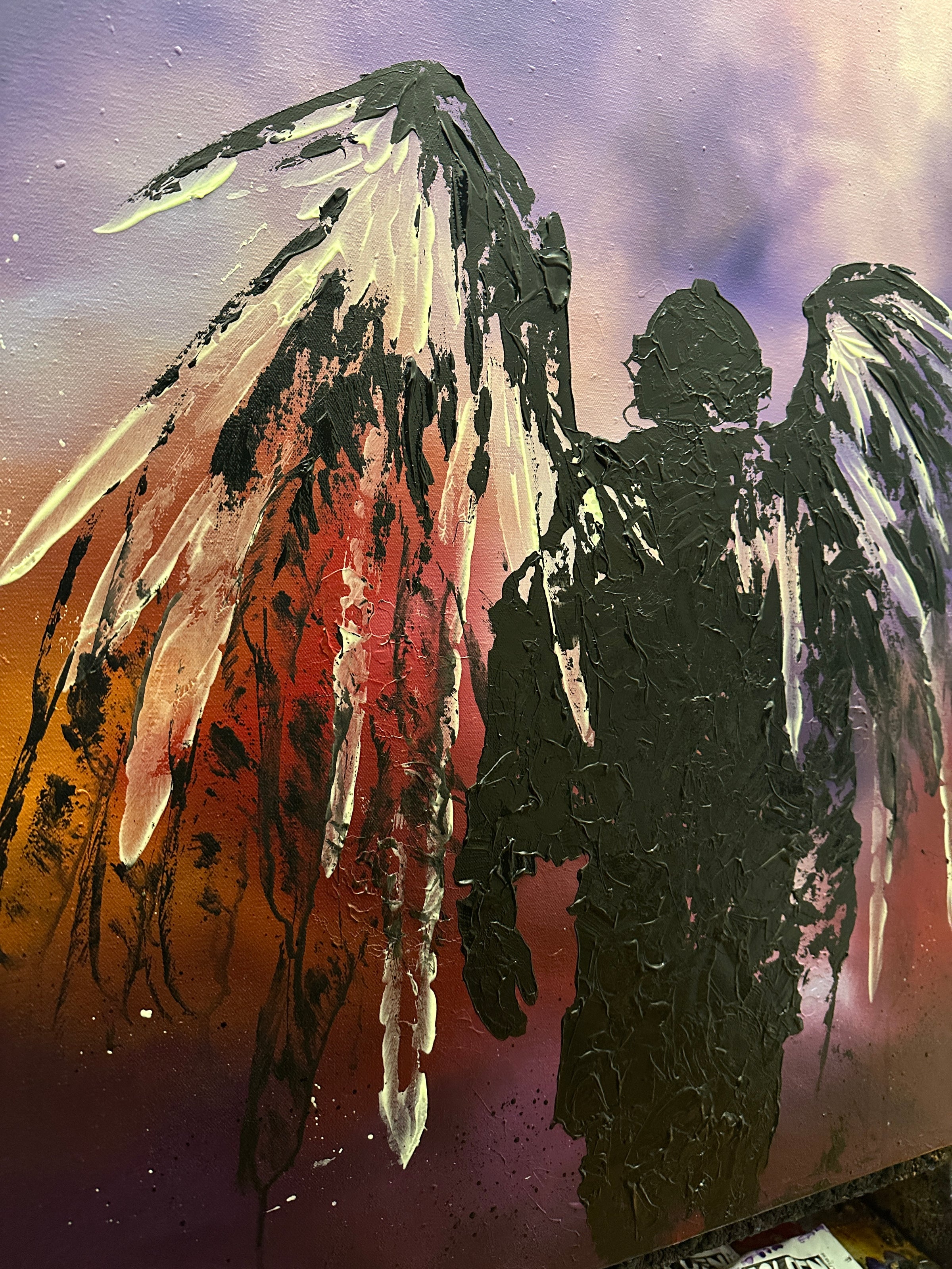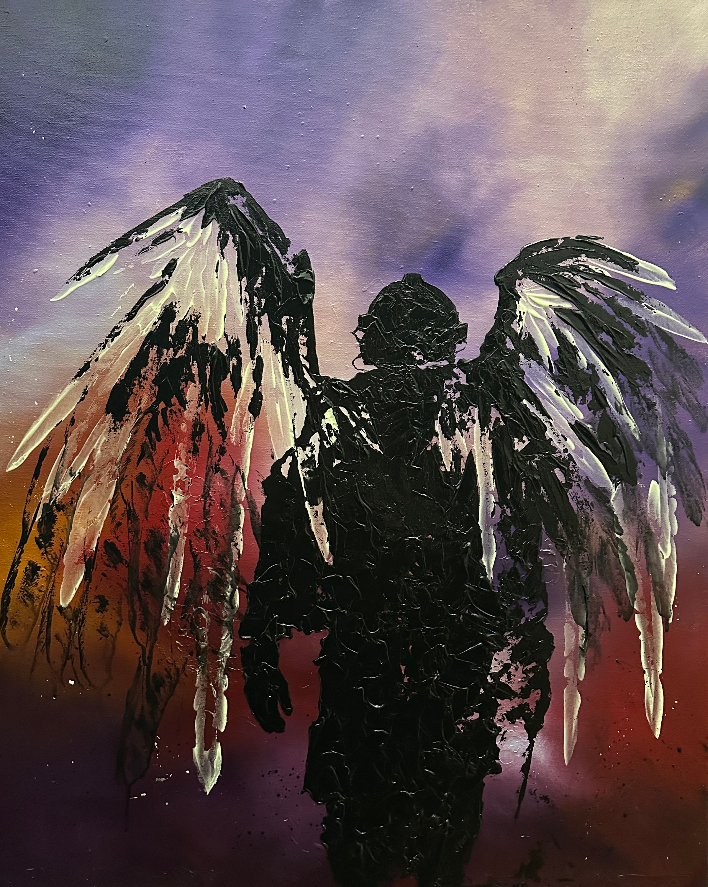 This is a 24x30 inch canvas done in heavy body acrylics. Please note that portions of this painting do glow in the dark. This is a 1 of 1 original painting by Invader Girl.