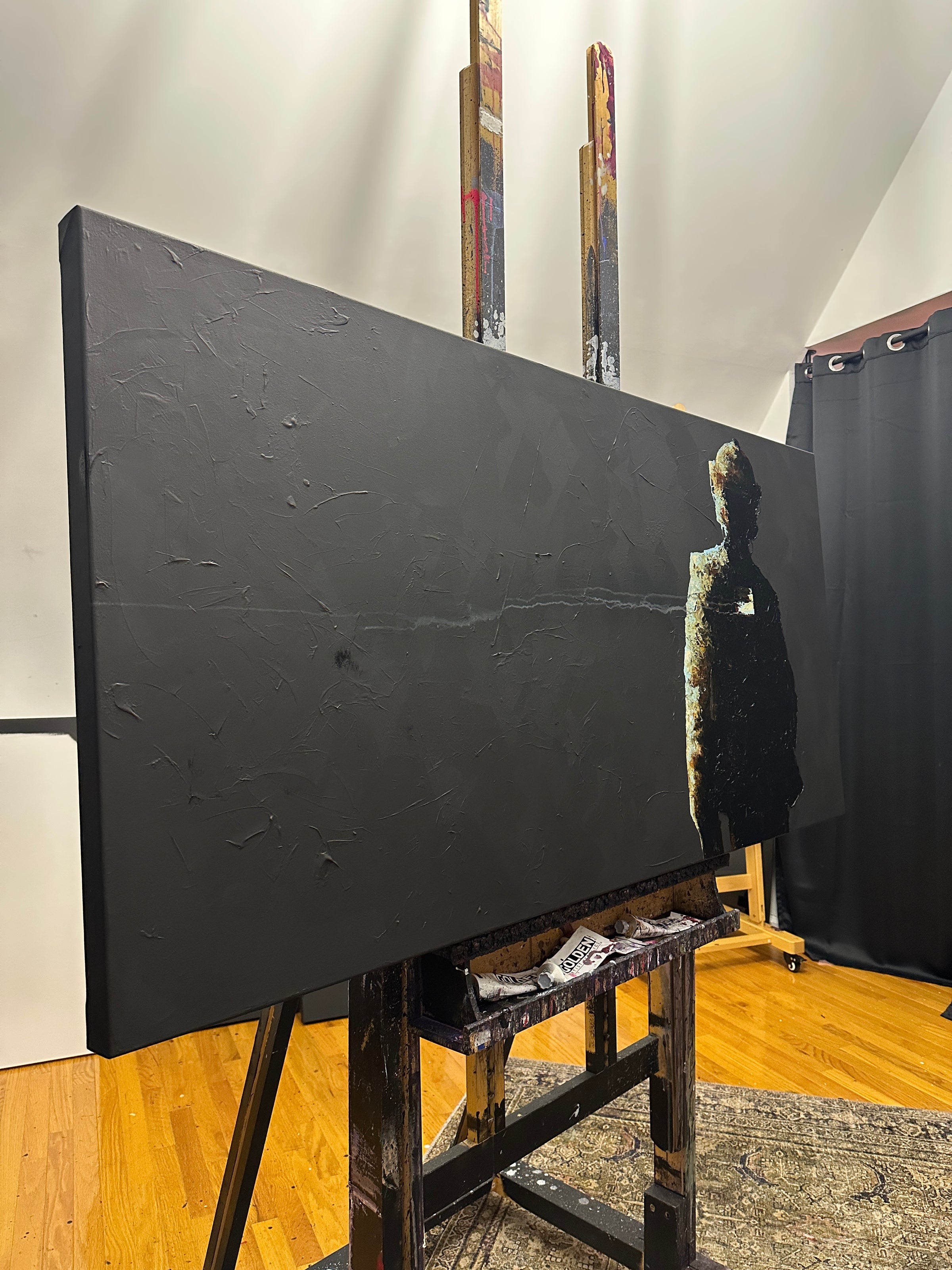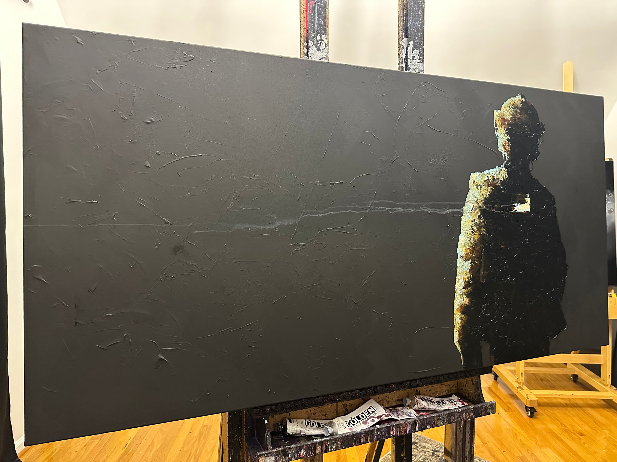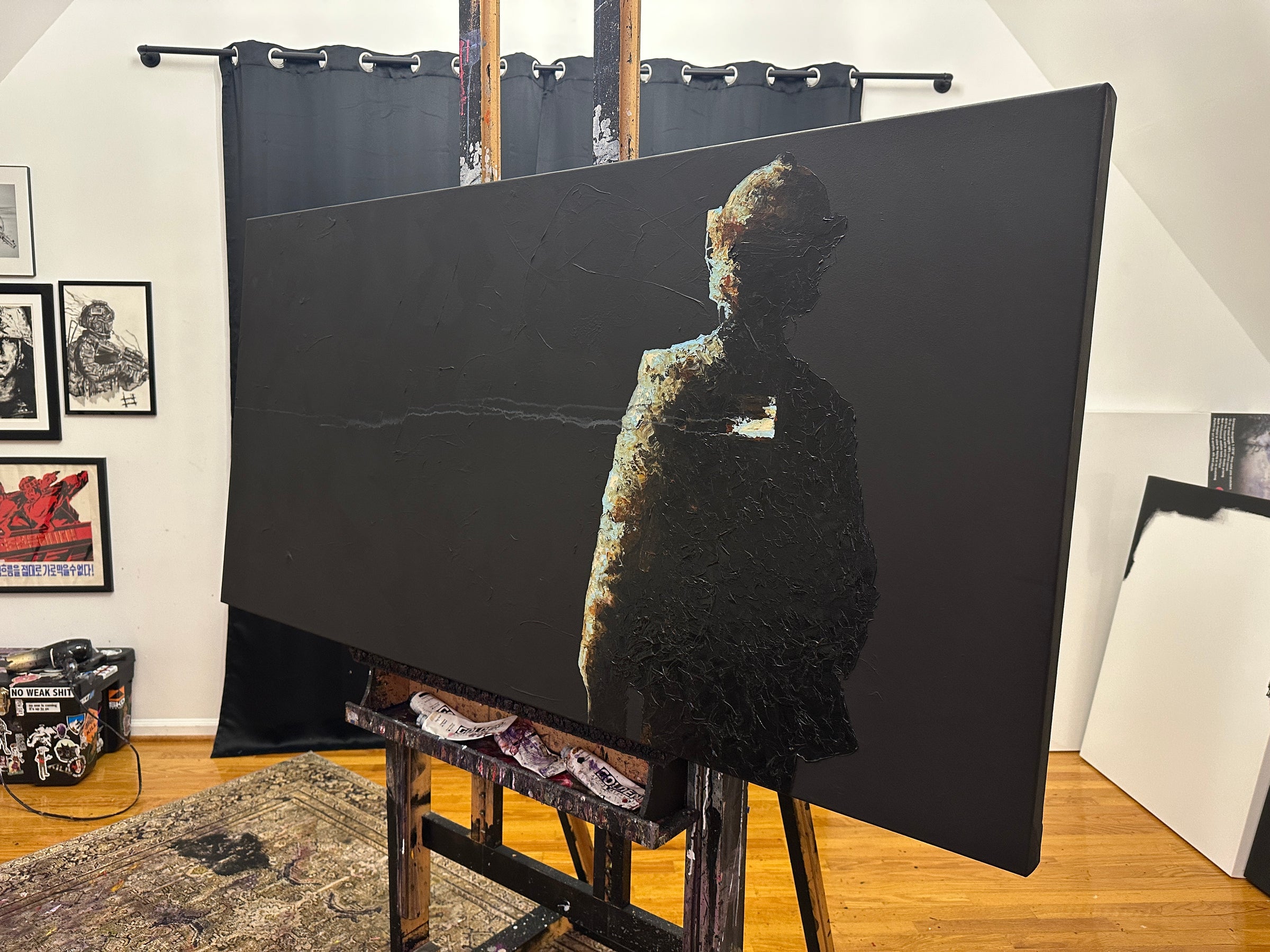 This is a 30x60 inch canvas done in heavy body acrylics. This is a 1 of 1 original painting from Invader Girl.
