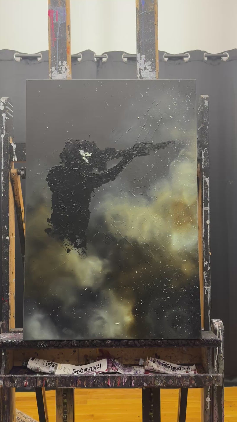 This is a 20x30 inch canvas done in heavy body acrylics. Please note some portions of this painting do glow in the dark. This is a 1 of 1 original from Invader Girl.